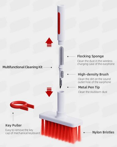 Even with its compact design, the 5 in 1 Keyboard and Earphone Cleaner is capable of helping you with multiple cleaning tasks. It's capable of brushing, dusting, and picking away dirt from any part of your keyboard and earphones.